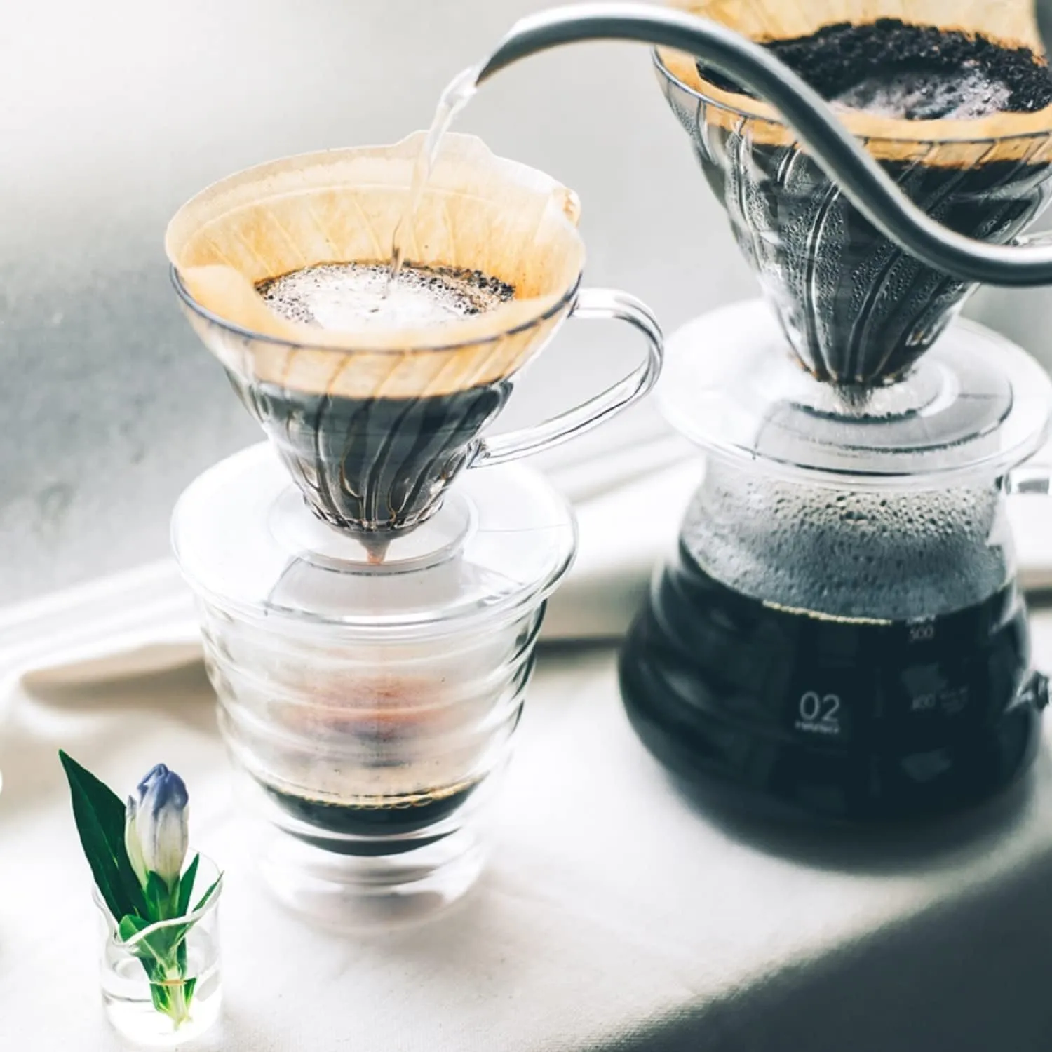 Produzido em resina transparente resistente ao calor, o V60-02 possibilita acompanhar visualmente todo o processo de preparo, tornando a experiência mais intuitiva e precisa.