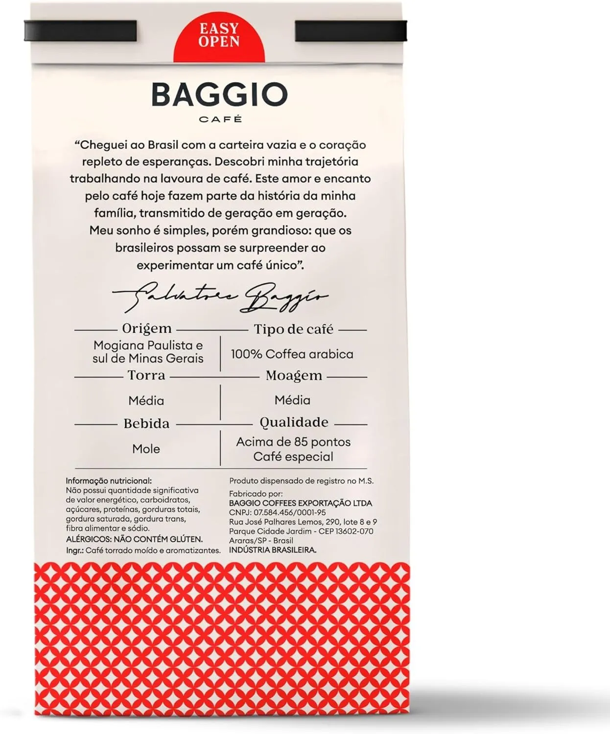 O Café Moído Baggio Chocolate com Avelã é ideal para quem deseja ir além do café tradicional e explorar uma experiência aromática diferenciada. Produzido com grãos 100% Arábica, cultivados na Mogiana Paulista e no Sul de Minas Gerais, este café une qualidade, tradição e inovação em cada xícara.