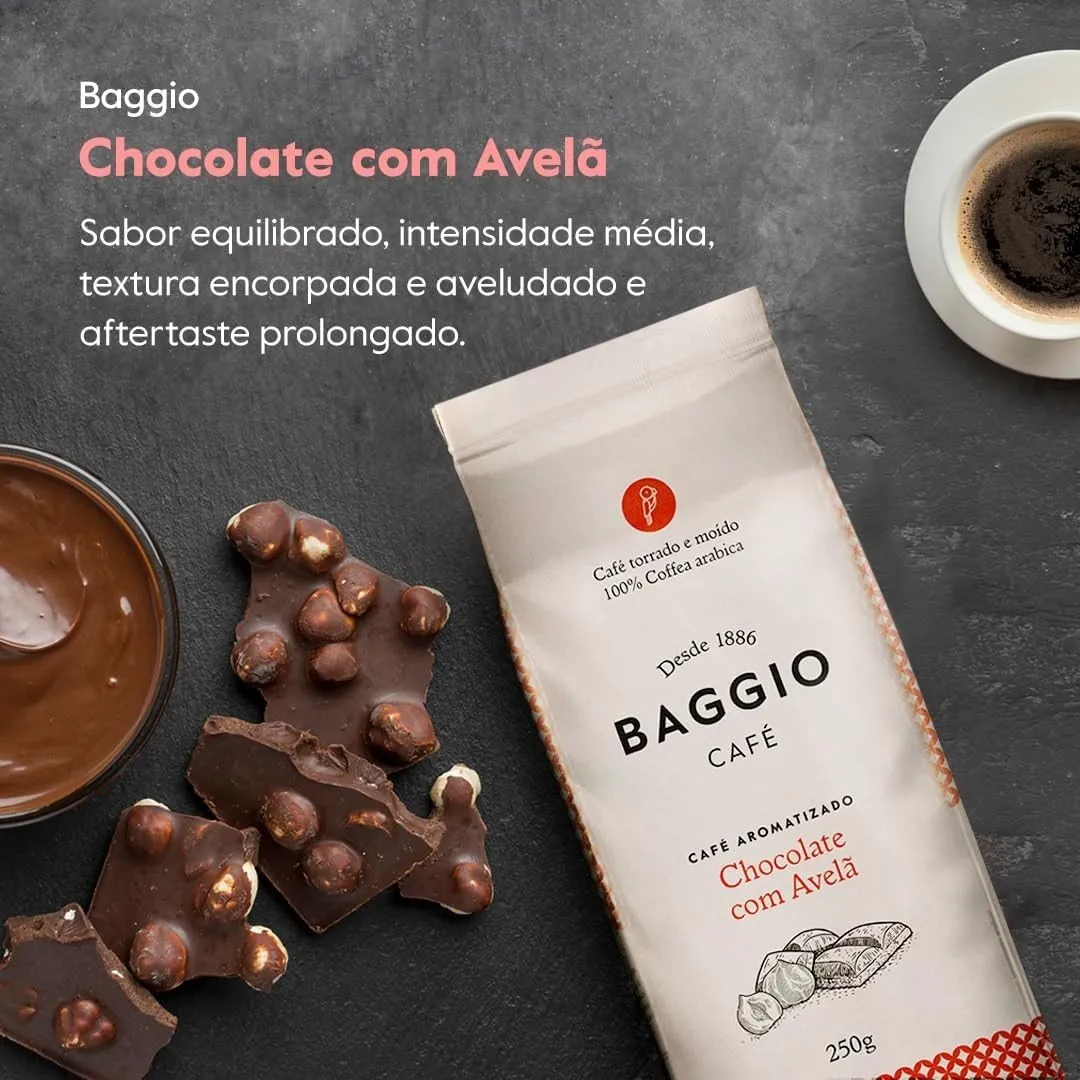 Café Moído Baggio Chocolate com Avelã 250g – Torra Média, Aroma Premiado e Sabor Envolvente