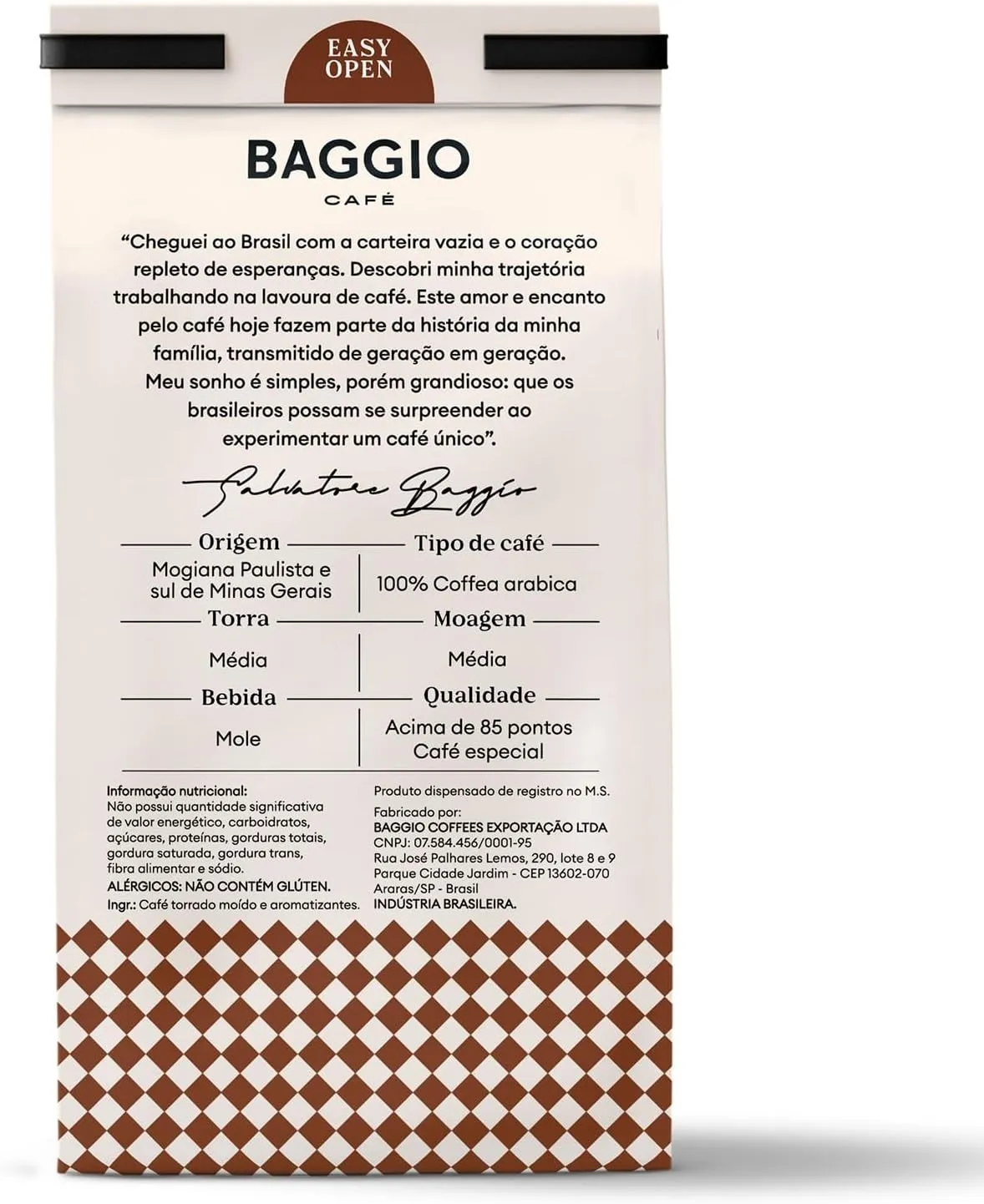 Café Moído Baggio Chocolate Trufado 250g – Torra Média, Aroma Intenso e Perfil Sofisticado